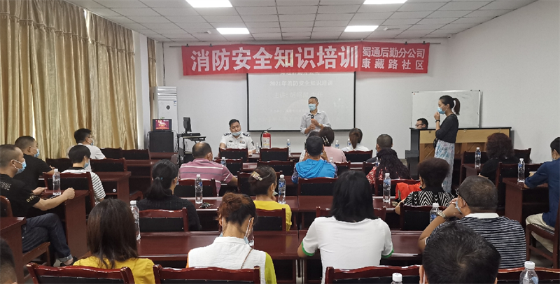 为切实贯彻“安全第一、预防为主”和“安全重于泰山”的指导方针,进一步提升门面商铺租户的消防意识,形成大安全的良好氛围, 9月14日,蜀通公司联合康藏路社区、河北派出所组织公司雨城区范围内门面商铺租户80余人召开了消防安全知识培训及消防演练。