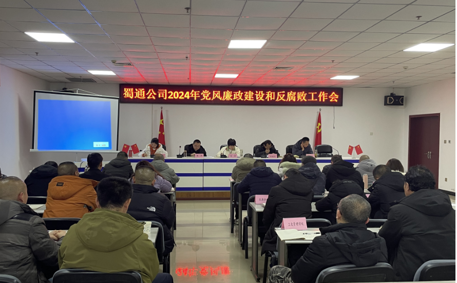 为扎实推进交建集团蜀通公司党风廉政建设,强化广大党员干部廉洁自律意识,增强拒腐防变能力,2月28日,交建集团蜀通公司党总支组织召开2024年党风廉政设和反腐败工作会。公司领导、中层干部参加了会议。