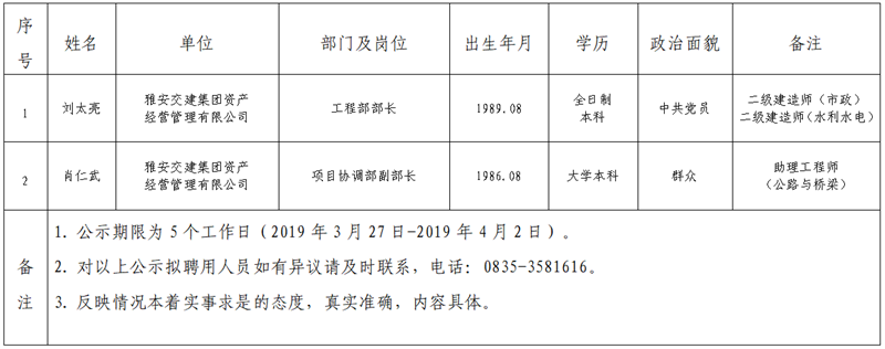 DB视讯 集团子公司拟聘用人员公示(路桥公司)