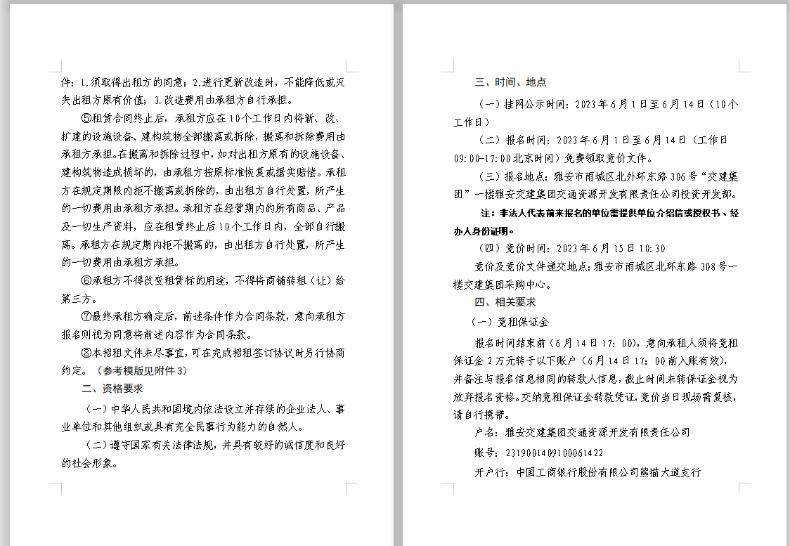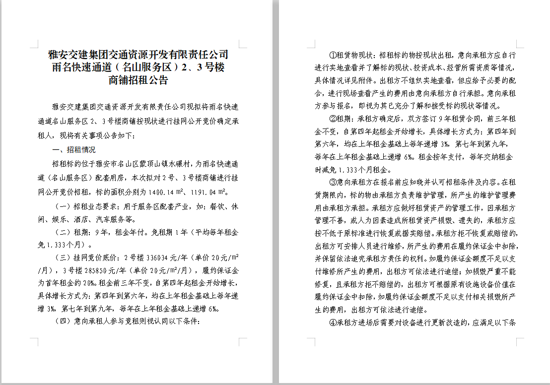 交通资源开发公司雨名快速通道(名山服务区)2、3号楼商铺招租公告附件