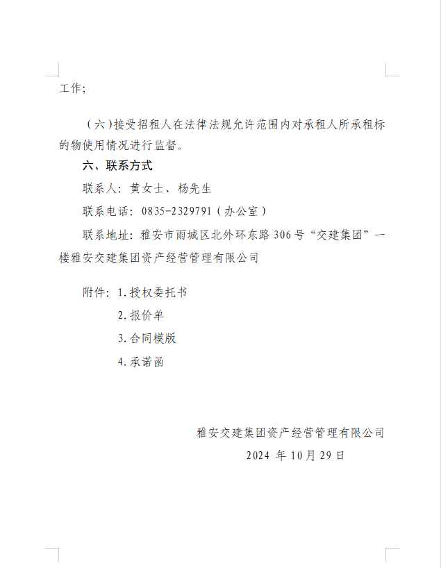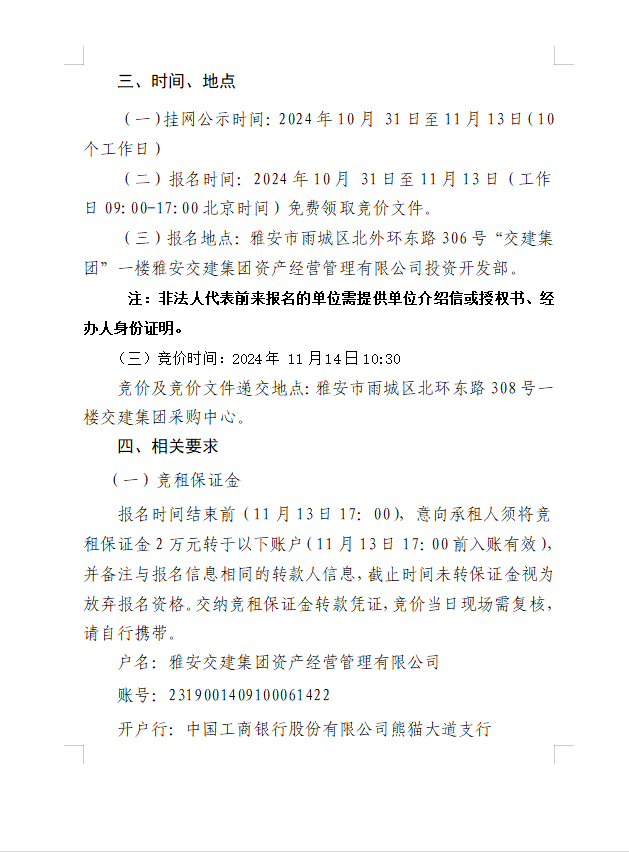 DB视讯 集团资产经营管理有限公司雨名快速通道(名山服务区)1号楼配套用房招租公告